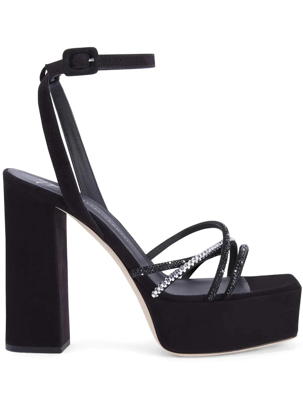 120mm Arhama embellished platform sandals Highlights - Black - Suede - Crystal embellishment - Multi-way strap design - Branded leather insole - Square toe - Buckle-fastening ankle strap - High block heel - Platform sole Made in Italy Composition Suede 100%