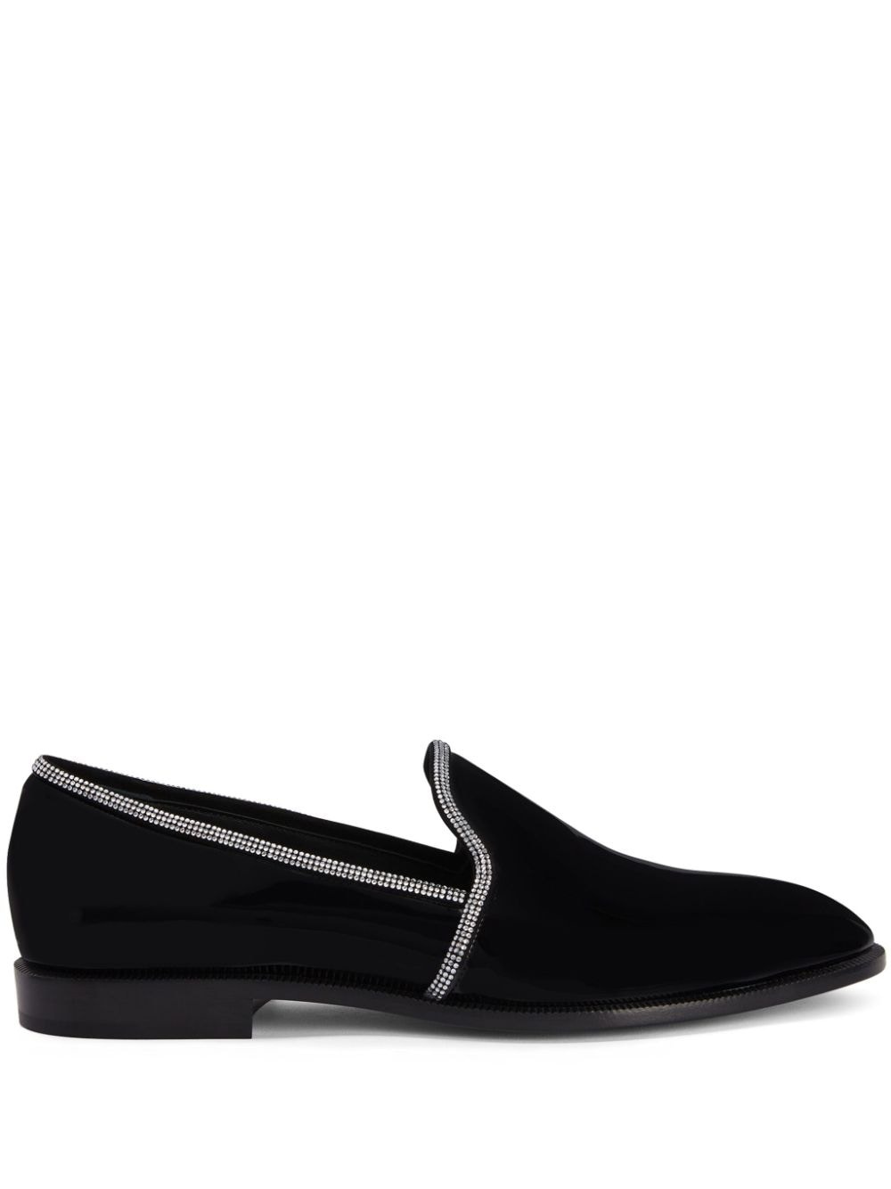 Ariees crystal-embellished loafers Highlights - Black - Leather - Patent finish - Crystal embellishment trim - Almond toe - Slip-on style - Branded leather insole - Faux-leather sole Made in Italy Composition Sole: Leather 100% Lining: Leather 100% Outer: Polyurethane 100% SIZE & FIT Measurement HEEL 0.78 in(2 cm)
