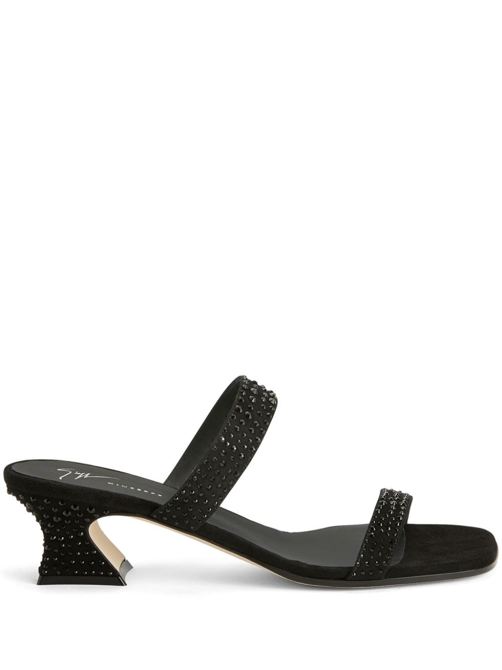Aude Strass 45mm rhinestone sandals Highlights - Black - Leather/suede - Crystal embellishment - Open toe - Slip-on style - Branded leather insole - Low block heel Made in Italy Composition Suede 100% SIZE & FIT Measurement HEEL 1.77 in(4.5 cm)