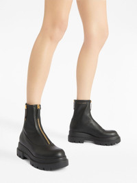 Avide zip-up combat boots Highlights - Black - Polished finish - Round toe - Ankle-length - Short side zip fastening - Front zip fastening - Rear zip fastening - Ridged rubber sole Made in Italy Composition Other fibres 100% SIZE & FIT Measurement HEEL 1.57 in(4 cm)