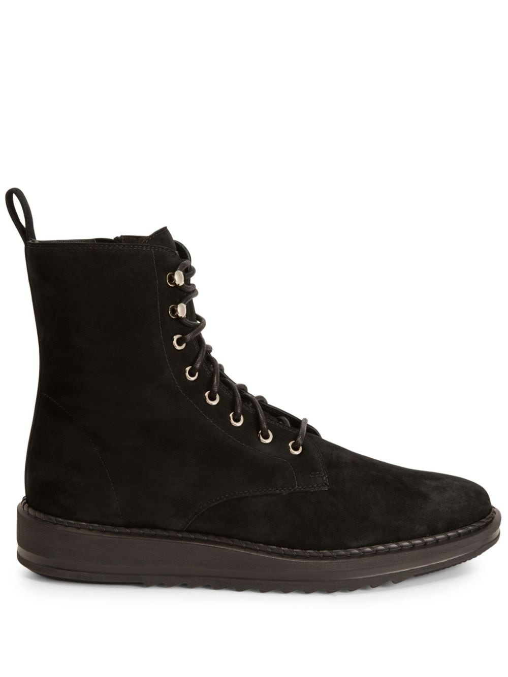 Bassline suede lace-up boots Highlights - Black - Calf suede - Logo patch at the tongue - Lace-up detailing - Round toe - Side zip fastening - Pull-tab at the heel - Faux-fur lining - Flat rubber sole Made in Italy Composition Outer: Suede 100% Sole: Rubber 100% Lining: Artificial Fur 100%