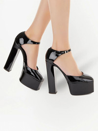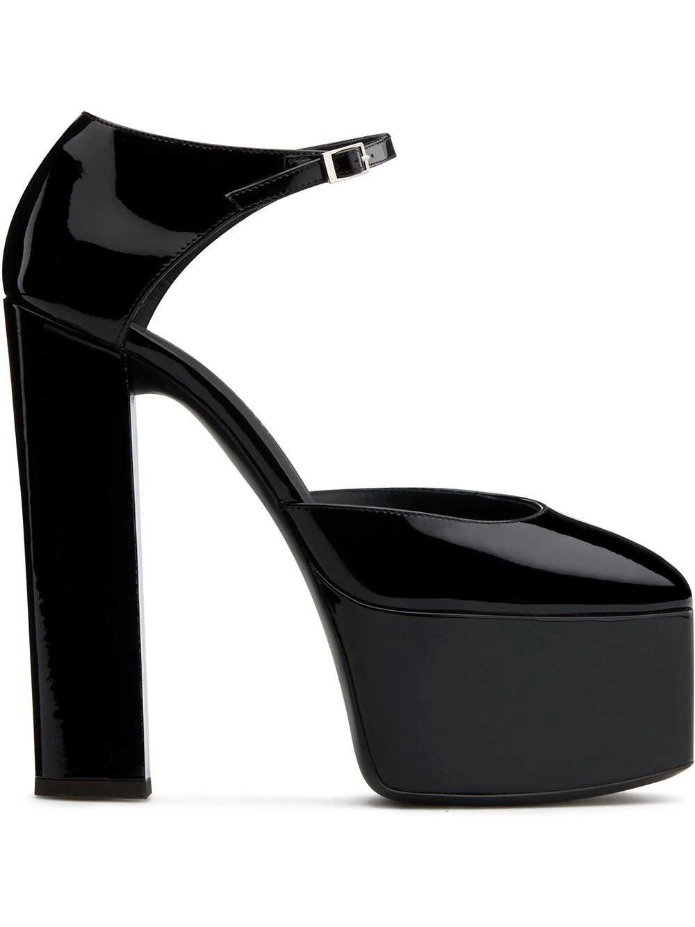 150mm Bebe platform pumps Giuseppe Zanotti's Bebe pumps will take outfits to new heights. Towering atop a high-block heel and a thick platform sole, this black patent-leather pair is nothing short of showstopping. Highlights - Black - Patent leather - High-shine finish - Square toe - Buckle-fastening ankle strap - Branded leather insole - Platform sole - 120mm high-block heel - Leather sole Made in Italy Composition Outer: Leather 100% Lining: Leather 100% Sole: Leather 100% SIZE & FIT Measurement HEEL 5.9 in(15 cm) PLATFORM 2.75 in(7 cm)