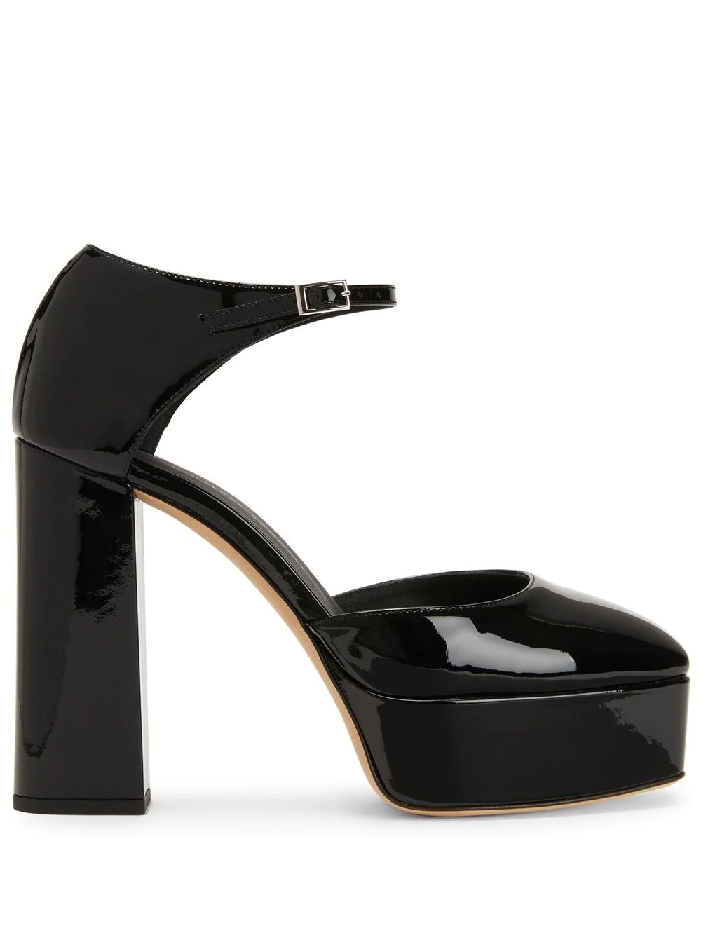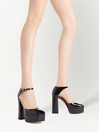 120mm Bebe platform pumps Highlights - Black - High-shine finish - Branded leather insole - Square toe - Buckle-fastening ankle strap - High block heel - Platform sole Made in Italy Composition Other fibres 100% SIZE & FIT Measurement HEEL 4.72 in(12 cm)