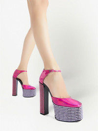 150mm Bebe Strass pumps Highlights - Pink - Leather - High-shine finish - Crystal embellishment - Square toe - Buckle-fastening ankle strap - High block heel Made in Italy Composition Outer: Leather 100% Sole: Leather 100% Lining: Leather 100%