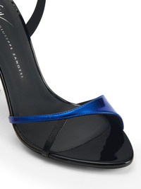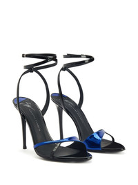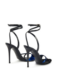 105mm Mounage sandals Highlights - Black/blue - Leather - Patent finish - Open toe - Buckle-fastening ankle strap - High stiletto heel - Branded insole Made in Italy Composition Outer: Fabric 100% Sole: Leather 100% Lining: Calf Leather 100%