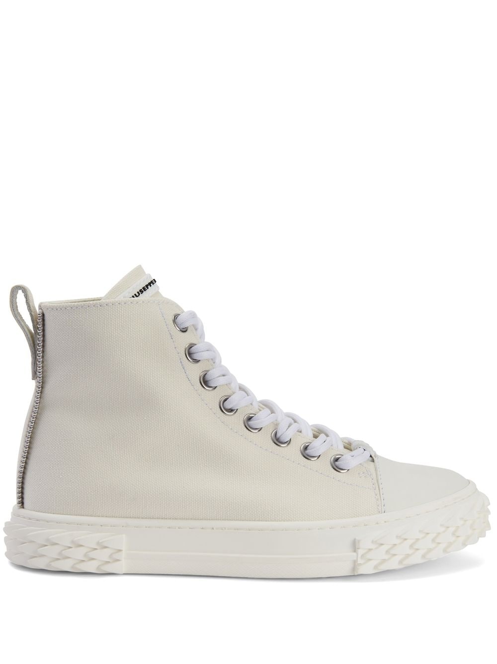 Blabber high-top sneakers white cotton decorative zip detailing rubber toecap front lace-up fastening logo patch at the tongue ankle-length pull-tab at the heel ankle-length signature Blabber sole Made in Italy Composition Cotton 100%