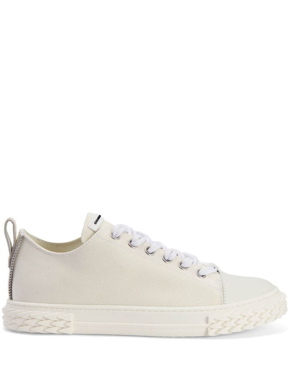 Blabber low-top sneakers white cotton/suede decorative zip detailing round toe rubber toecap front lace-up fastening logo patch at the tongue branded insole pull-tab at the heel signature Blabber sole Made in Italy Composition Cotton 100%