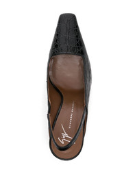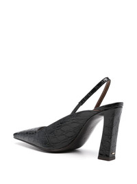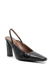 90mm Brendha Sabot pumps Highlights - Black - Calf leather - Embossed crocodile effect - Square toe - Elasticated slingback strap - Branded footbed - Contrast lining - High sculpted heel - Leather sole - Slip-on style Made in Italy Composition Outer: Calf Leather 100% Lining: Calf Leather 100% Sole: Calf Leather 100% SIZE & FIT Measurement HEEL 3.85 in(9.8 cm)