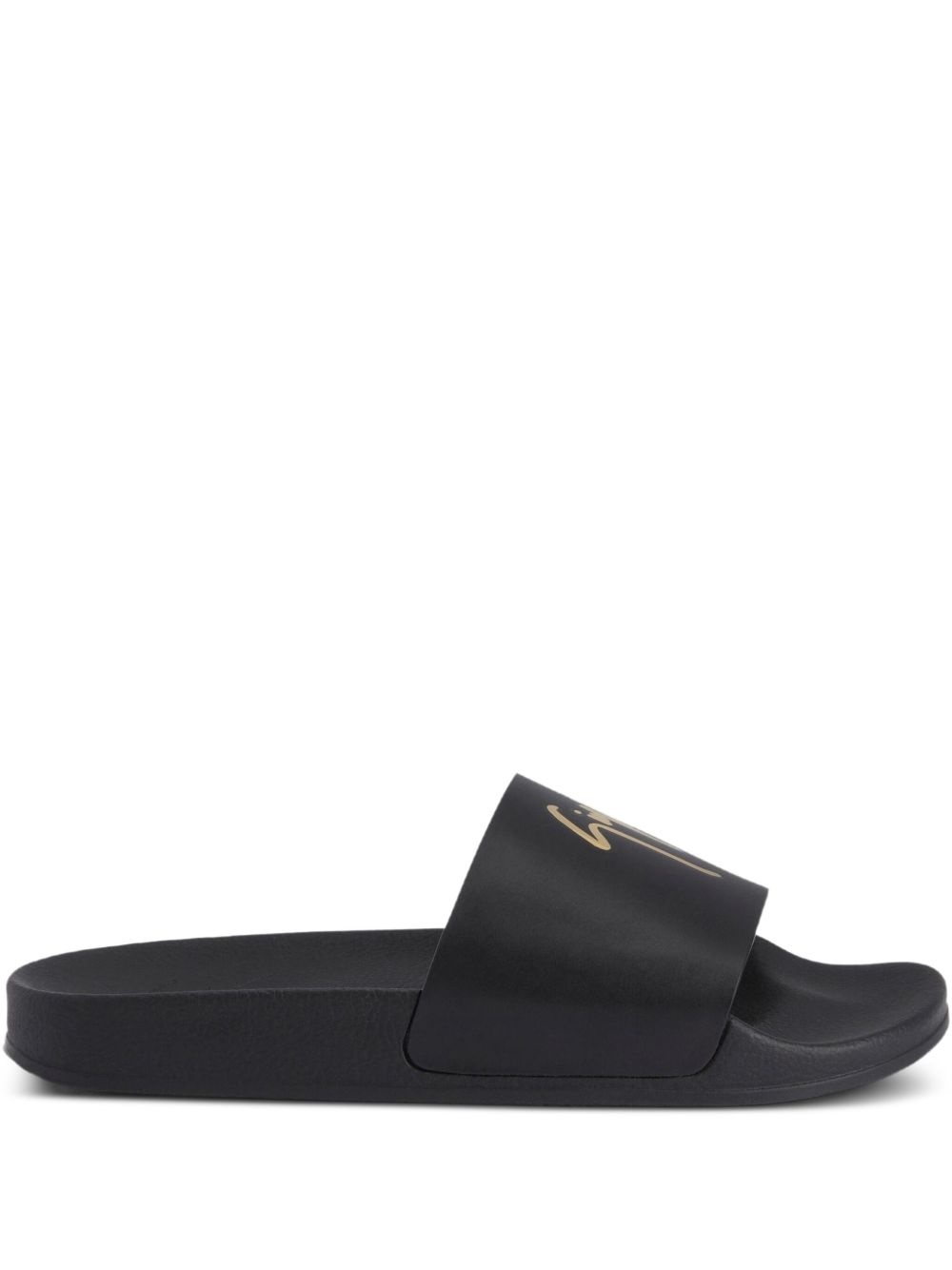Brett logo-embellished leather slides Highlights - Black - Leather upper - Gold logo - Open toe - Flat sole - Slip-on style Made in Italy Composition Outer: Leather 100% Sole: Rubber 100% Lining: Fabric 100%