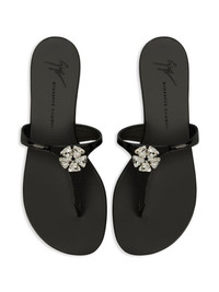 Brionne crystal-embellished leather sandals Highlights - Black - Leather - Patent finish - Crystal embellishment - Silver-tone hardware - Round open toe - Thong style - Branded footbed - 10mm low stacked heel - Leather sole Made in Italy Composition Outer: Leather 100% Sole: Leather 100% Lining: Leather 100%