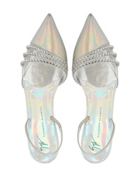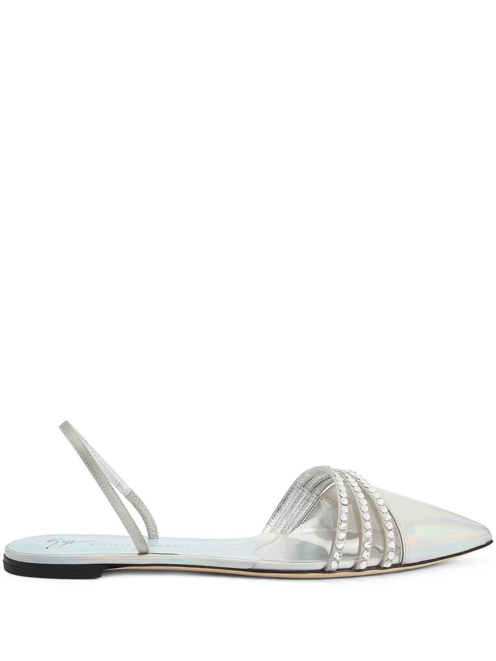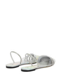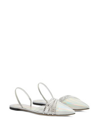 Claralie slingback flat sandals silver-tone laminated finish transparent panel detail rhinestone embellishment branded leather insole pointed toe slingback strap flat sole Made in Italy Composition Other fibres 100%