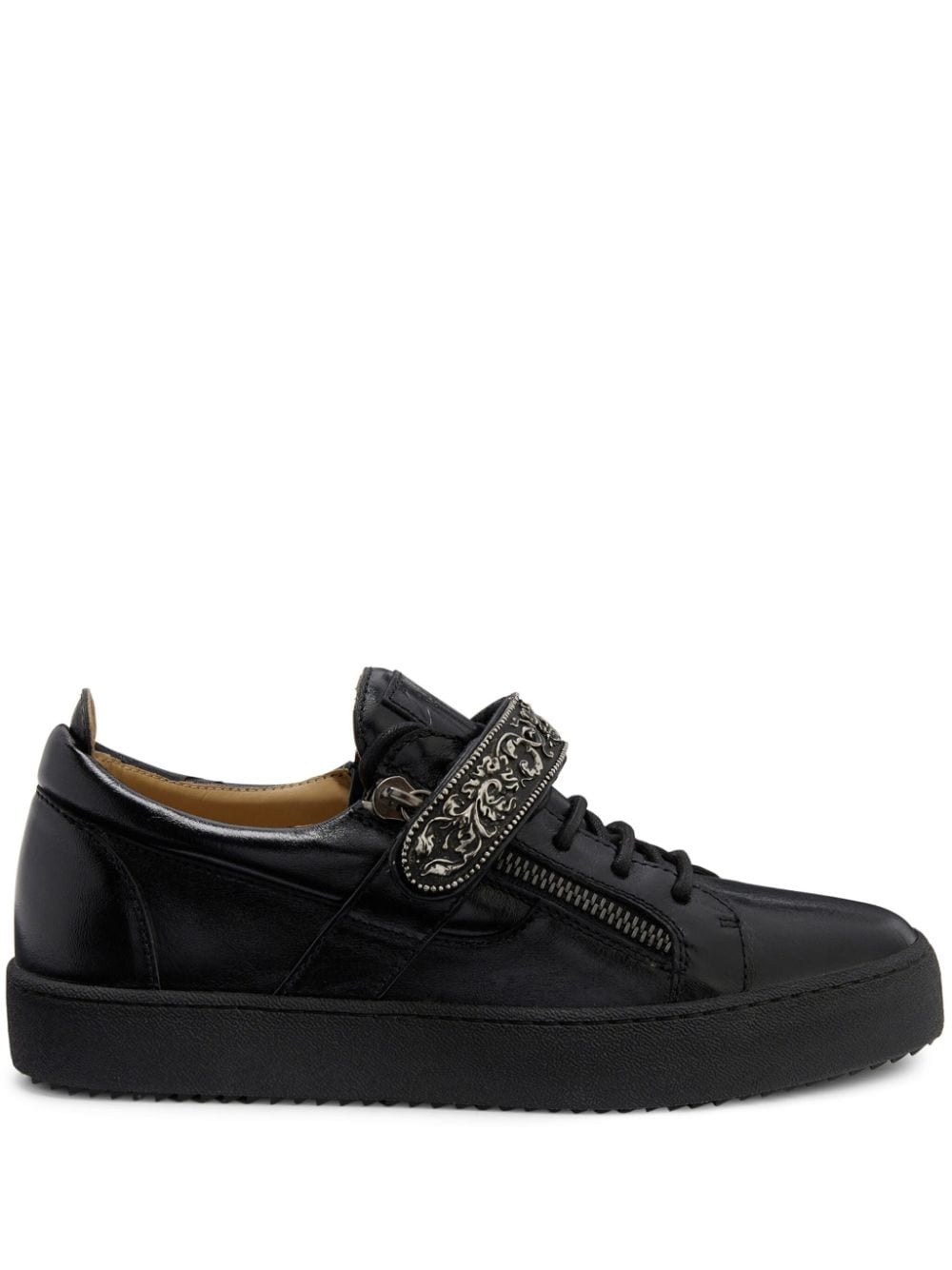 Coby Deluxe single-plate low-top sneakers Highlights - Black - Calf leather - Mixed-metal hardware - Round toe - Front lace-up fastening - Side zip fastening - Branded insole - Flat rubber sole Made in Italy Composition Outer: Leather 100% Sole: Rubber 100% Lining: Calf Leather 100%