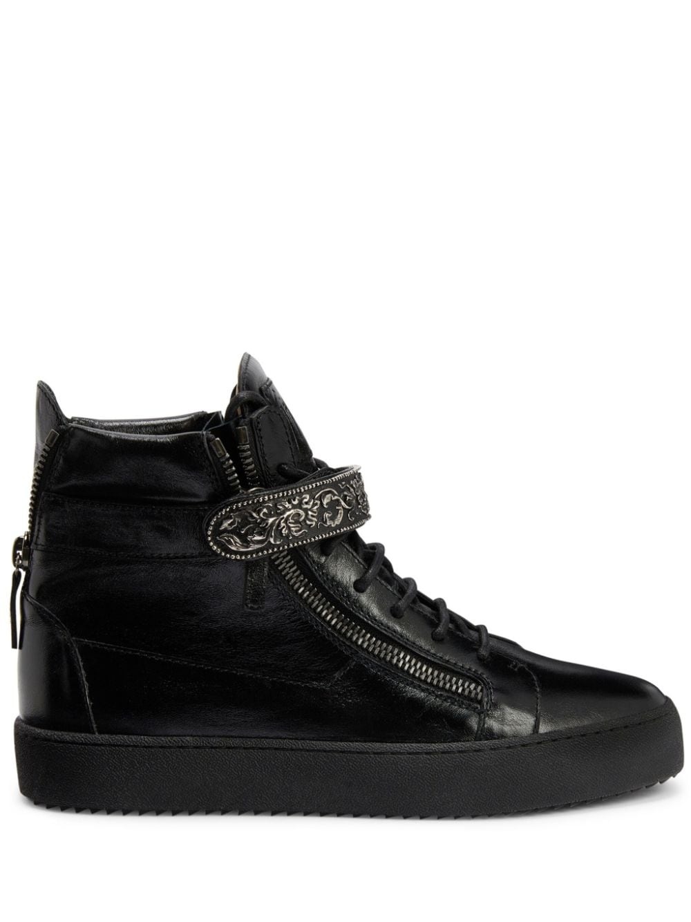 Coby Deluxe leather single-strap mid-top sneakers Highlights - Black - Calf leather - Mixed-metal hardware - Logo patch at the tongue - Round toe - Front lace-up fastening - Rear zip fastening - Branded insole - Flat rubber sole Made in Italy Composition Outer: Leather 100% Sole: Rubber 100% Lining: Calf Leather 100%