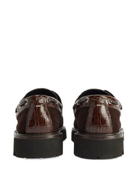 crocodile-embossed suede lace-up shoes