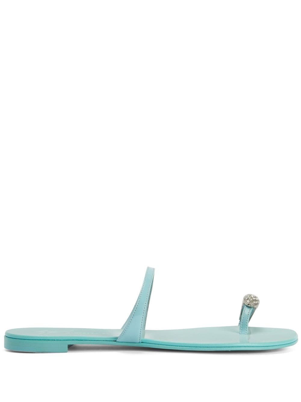crystal-embellished flat sandals Highlights - Crystal-embellished flat sandals from giuseppe zanotti featuring light blue, crystal embellishment, branded insole, open toe, double-strap design and low heel. Made in Italy Composition Other fibres 100% SIZE & FIT Measurement HEEL 0.39 in(1 cm)