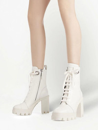 110mm Cubalibre boots Highlights - White - Leather - Silver-tone hardware - Logo patch at the tongue - Embossed logo to the rear - Pull-tab at the heel - Round toe - Front lace-up fastening - Side zip fastening - High block heel - Ridged rubber sole Made in Italy Composition Leather 100%