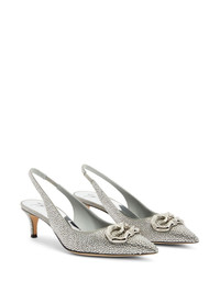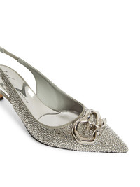 Cyprienne 50mm pumps Highlights - Silver-tone - Calf leather - Crystal embellishment - Gold-tone logo plaque - Pointed toe - Elasticated slingback strap - 50mm mid cone heel Made in Italy Composition Outer: Suede 100% Sole: Leather 100% Lining: Leather 100%