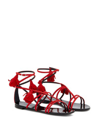 Danse Du Feu strappy sandals Red suede and leather Danse Du Feu strappy sandals from Giuseppe Zanotti featuring tassel detailing, a strappy design, a round toe, a branded insole, a side buckle fastening and a flat sole. Made in Italy Composition Suede 100%
