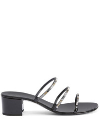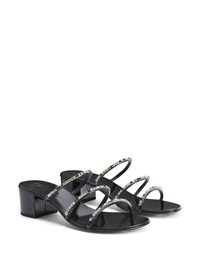 40mm Dark Colorful sandals Highlights - Black - Leather - Branded insole - Crystal embellishment - Open toe - Slip-on style - 40mm - Mid block heel Made in Italy Composition Outer: Fabric 100% Sole: Leather 100%