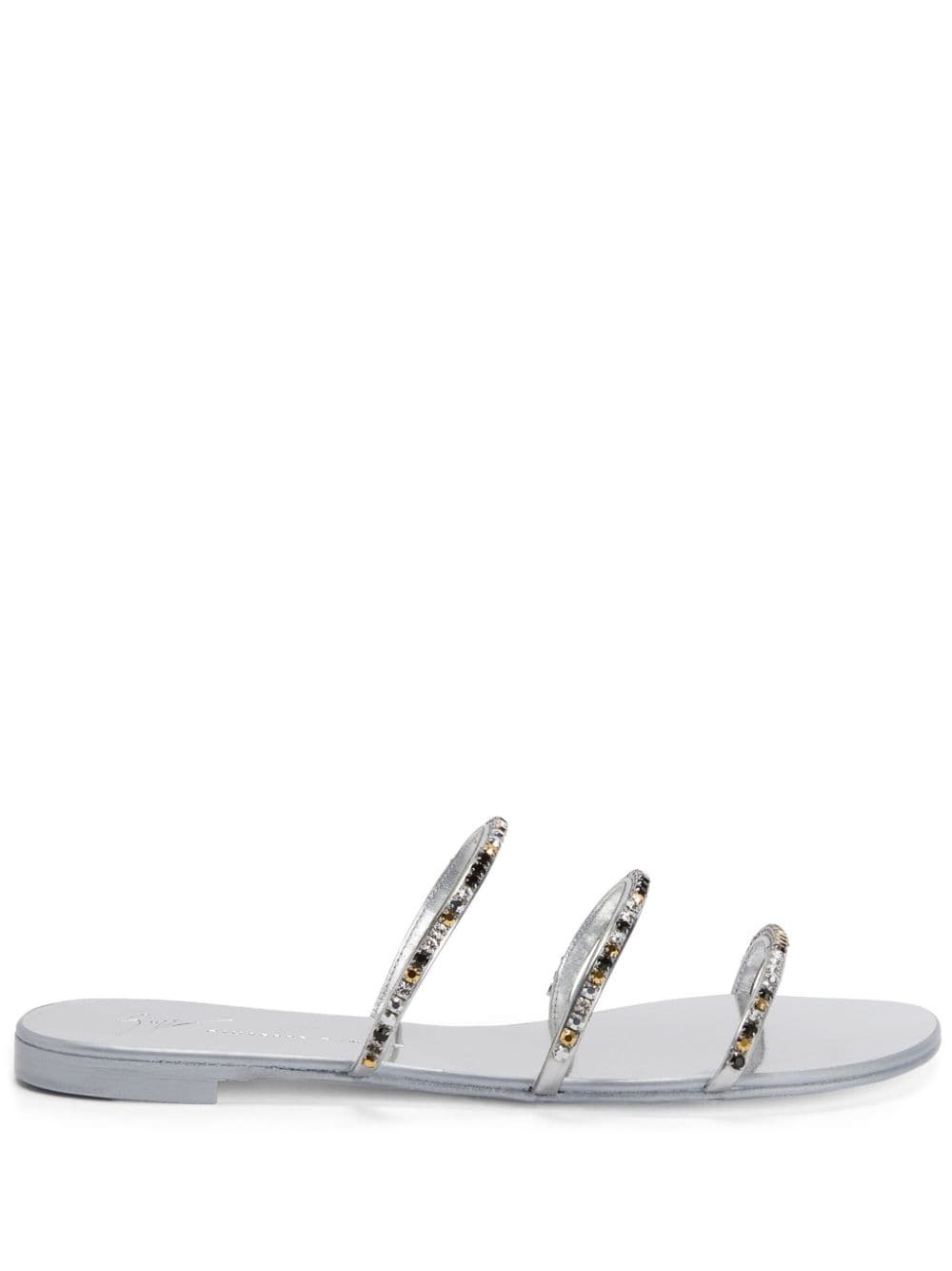 Dark Colorful rhinestone-embellished sandals Highlights - Silver-tone - Rhinestone embellishment - Strap detailing - Open toe - Slip-on style - Branded leather insole - Flat leather sole Made in Italy Composition Outer: Fabric 100% Sole: Leather 100%