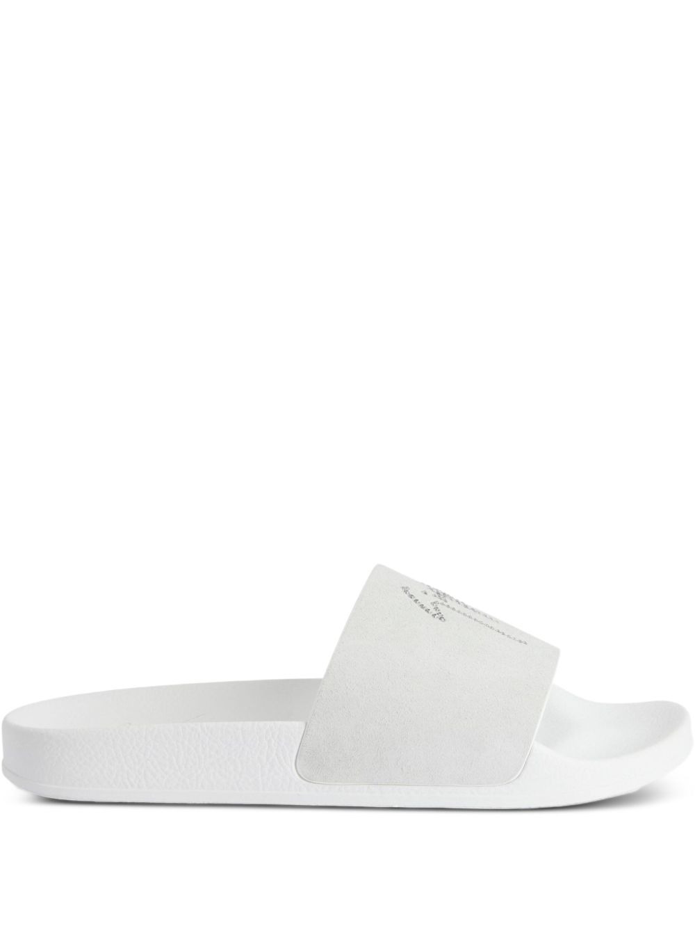 embellished leather slides Highlights - White - Leather upper - Embellished - Open toe - Flat sole - Slip-on style Made in Italy Composition Outer: Leather 100% Sole: Rubber 100% Lining: Fabric 100%