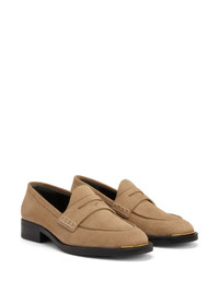 Faridha loafers Highlights - Camel brown - Suede/leather - Tonal stitching - Gold-tone trim - Penny slot - Round toe - Slip-on style - Branded leather insole - Low stacked heel - Leather sole Made in Italy Composition Suede 100%