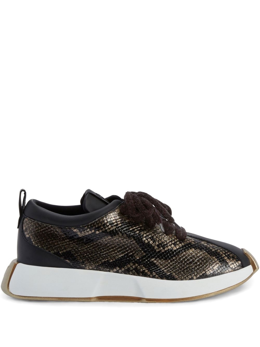 Giuseppe Zanotti Ferox lace-up low-top sneakers Highlights - Black - Front lace-up fastening - Flat rubber sole - Python print - Pull-tab at the heel Made in Italy Composition Outer: Leather 100%, Snake Print Leather 100% Sole: Rubber 100% Lining: Fabric 100%
