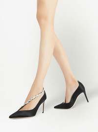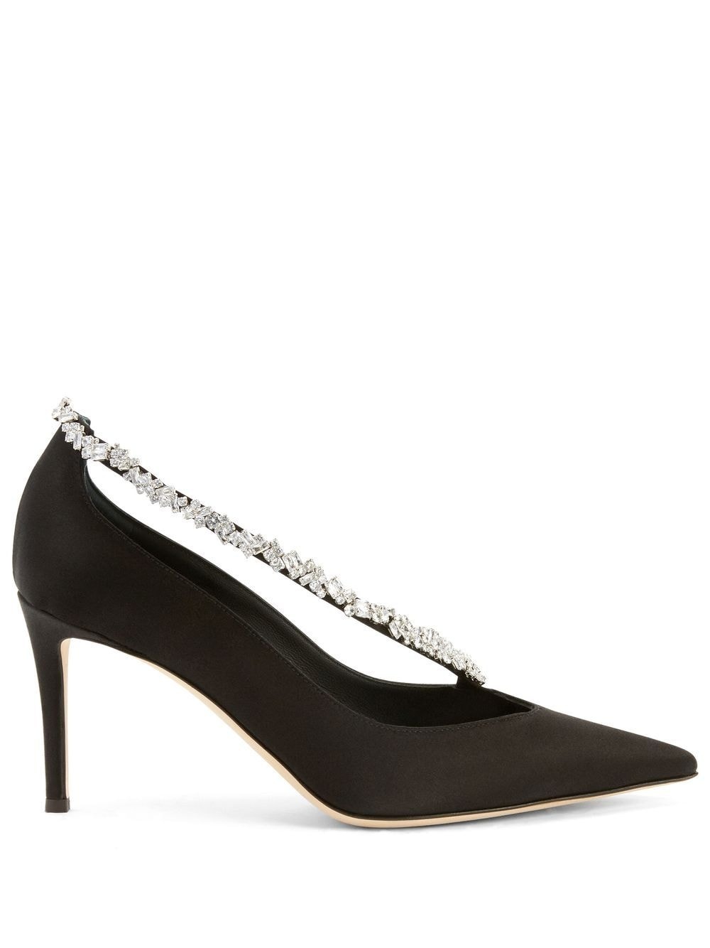 85mm Filipa crystal-embellished pumps Highlights - Black - Satin weave - Pointed toe - Crystal embellishment - Slip-on style - High stiletto heel Made in Italy Composition Outer: Satin 100% Lining: Fabric 100%