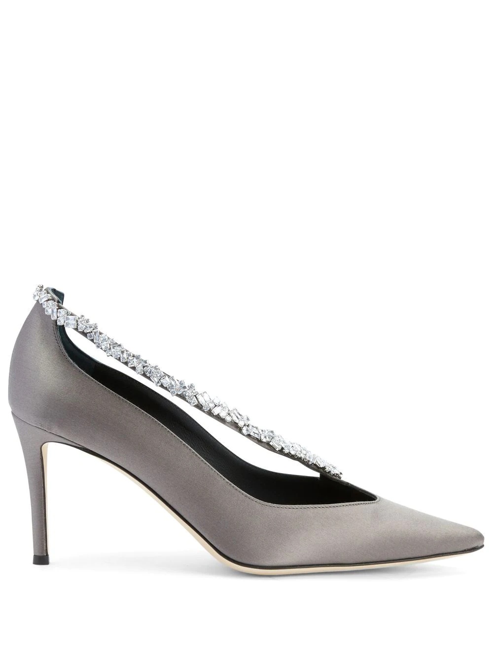 Filipa crystal-embellished pumps grey satin weave pointed toe crystal embellishment slip-on style high stiletto heel Made in Italy Composition Outer: Satin 100% Sole: Furs & Skins 100% Lining: Fabric 100%