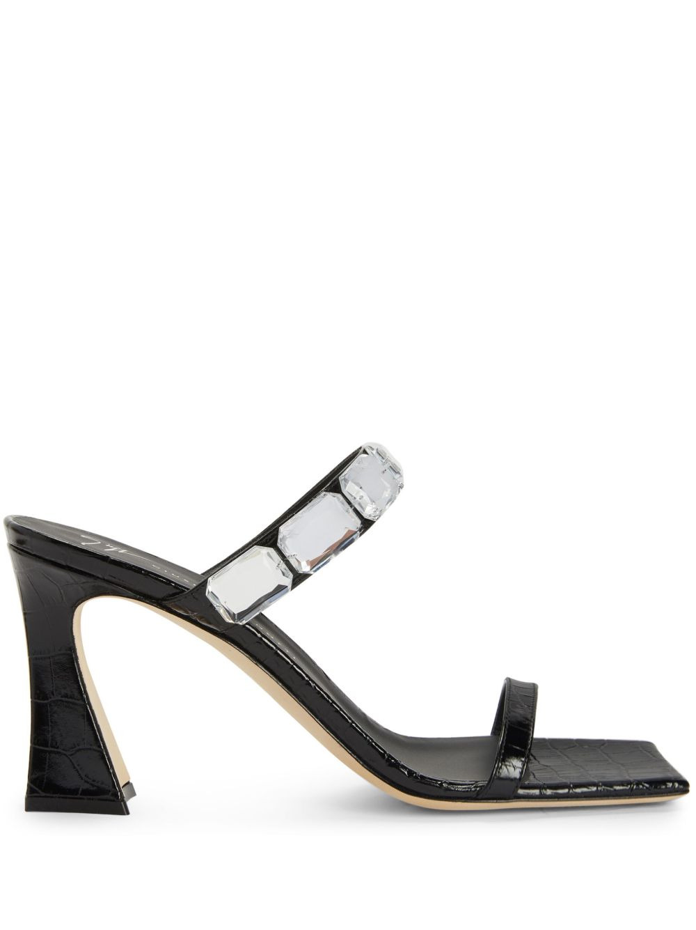 Flaminia 85mm square-toe sandals Highlights - Black - Leather - Embossed crocodile effect - Crystal embellishment - Square open toe - Branded leather insole - 85mm high heel Made in Italy Composition Outer: Leather 100% Sole: Leather 100% Lining: Leather 100%