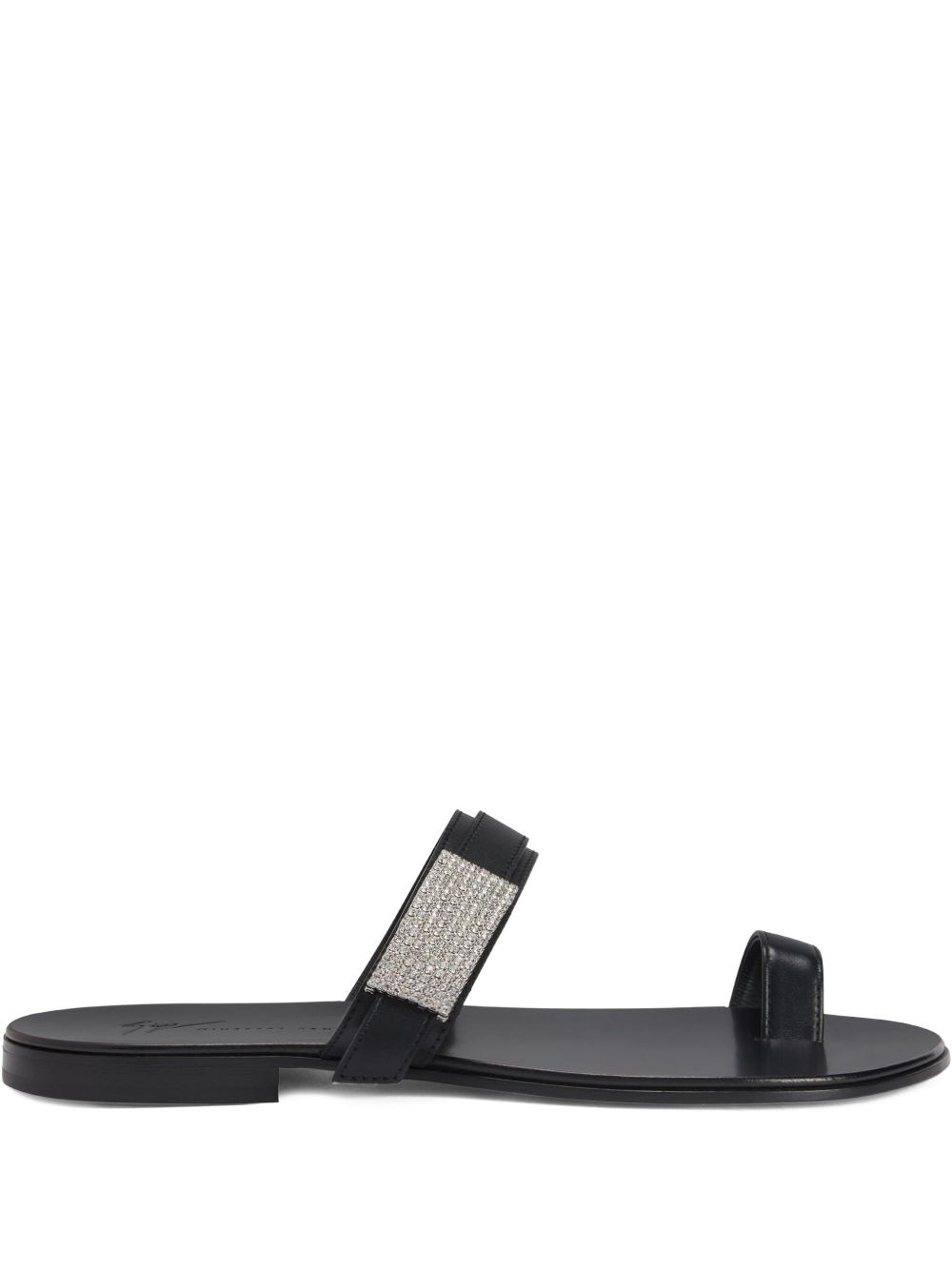 Flavien leather sandals Highlights - Black - Touch-strap fastening - Single toe strap - Crystal embellishment - Branded footbed Made in Italy Composition Outer: Leather 100%, Rhinestone 100% Sole: Leather 100% Lining: Calf Leather 100%