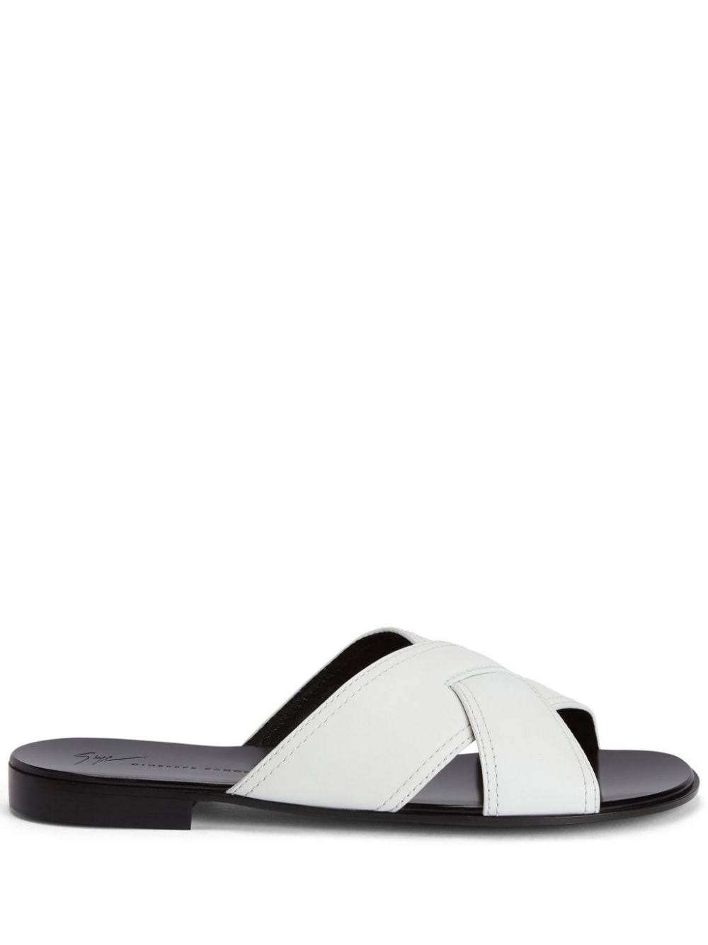 Flavio crossover-strap sandals Highlights - White/black - Leather - Crossover strap detail - Slip-on style - Round open toe - Branded insole - Flat sole Made in Italy Composition Outer: Leather 100% Lining: Leather 100% Sole: Leather 100%