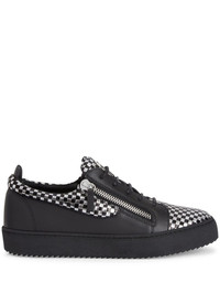 Frankie double-zip low-top sneakers Highlights - Black - Leather - Textured finish - Check pattern - Silver-tone logo lettering - Round toe - Front lace-up fastening - Side zip fastening - Branded leather insole - Flat rubber sole Made in Italy Composition Sole: Rubber 100% Outer: Bovine Leather (top grain) 100% Lining: Fabric 100%
