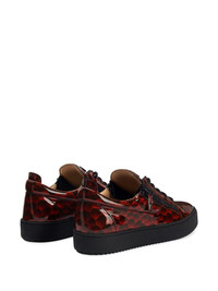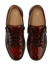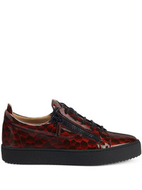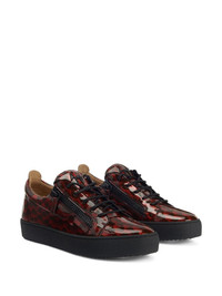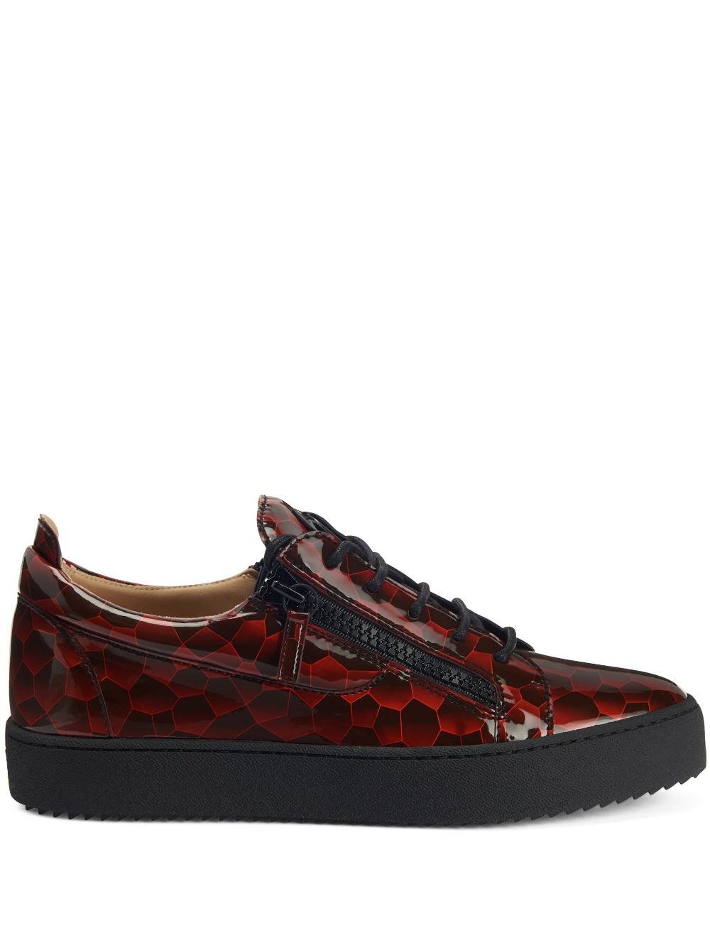 Frankie double-zip low-top sneakers Highlights - Dark red/black - Geometric-pattern print - Glazed finish - Logo plaque at the tongue - Logo at the sole - Almond toe - Front lace-up fastening - Side zip fastening - Contrasting rubber sole Made in Italy Composition Outer: Polyurethane 100% Sole: Rubber 100%