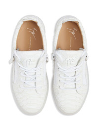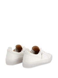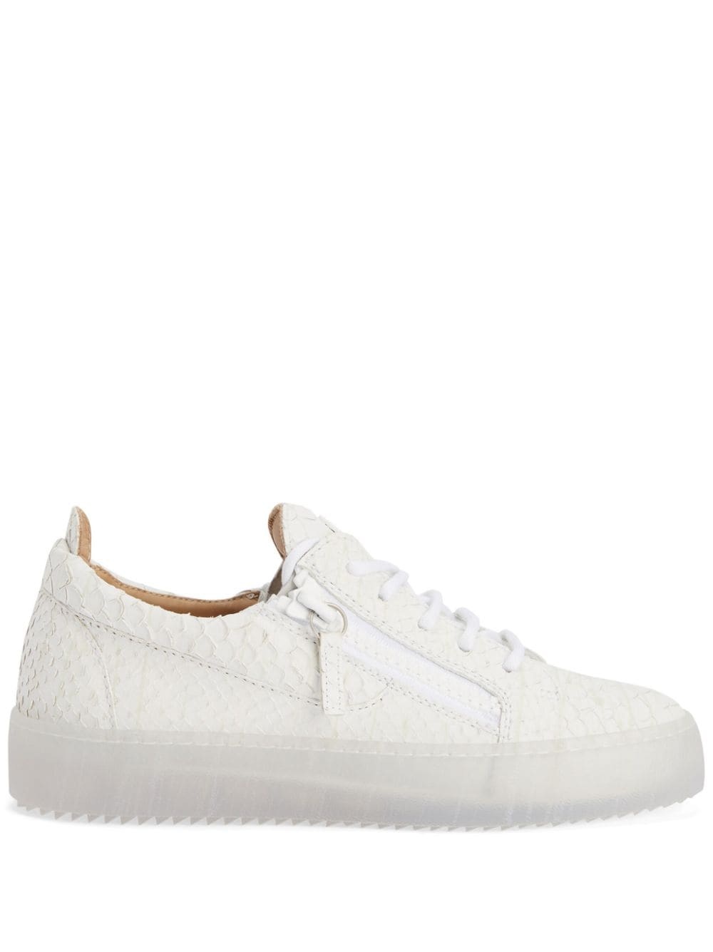 Frankie leather sneakers Highlights - White - Calf leather - Embossed crocodile effect - Decorative zip detailing - Round toe - Front lace-up fastening - Branded leather insole - Transparent rubber sole Made in Italy Composition Outer: Leather 100% Sole: Rubber 100% Lining: Calf Leather 100% SIZE & FIT Measurement HEEL 1.37 in(3.5 cm) Sole height 1.18 in(3 cm)