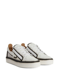 Frankie seam-detail double-zip low-top sneakers Highlights - White/black - Leather - Contrasting trim - Logo lettering - Round toe - Front lace-up fastening - Side zip fastening - Branded insole - Flat rubber sole Made in Italy Composition Outer: Leather 100% Sole: Rubber 100% Lining: Fabric 100%