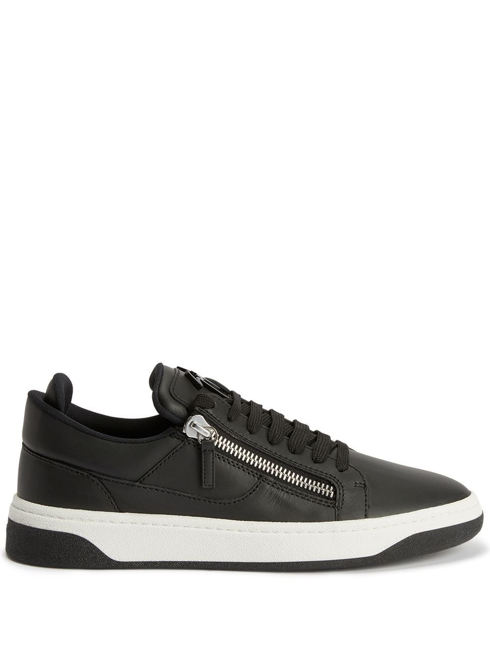 GZ94 sneakers Presented in Giuseppe Zanotti's SS23 collection, these sneakers are characterised by signature elements. Crafted from smooth leather, side zips and an embossed logo at the tongue are recognisable traits of the brand. Highlights - Black - Leather - Silver-tone hardware - Logo patch at the tongue - Round toe - Side zip fastening - Front lace-up fastening - Branded insole - Flat rubber sole Made in Italy Composition Leather 100%