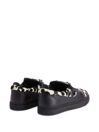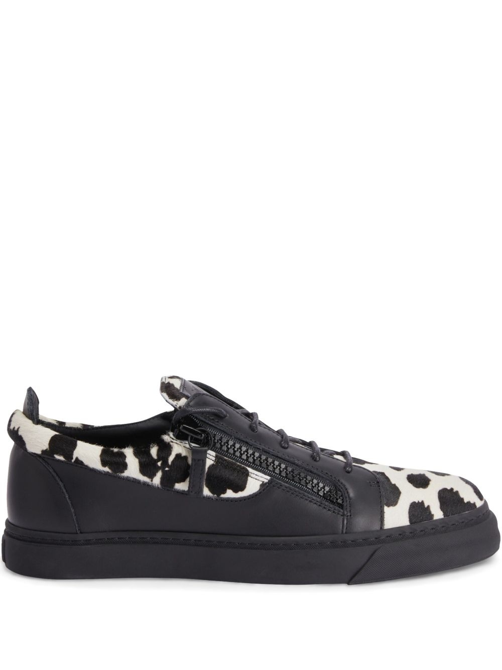Frankie double-zip low-top sneakers Highlights - Black and white - Leather upper - Animal print detailing - Front zip fastening - Lace-up closure - Rubber sole Made in Italy Composition Sole: Rubber 100% Outer: Leather 100%, Pony Fur 100% Lining: Leather 100%