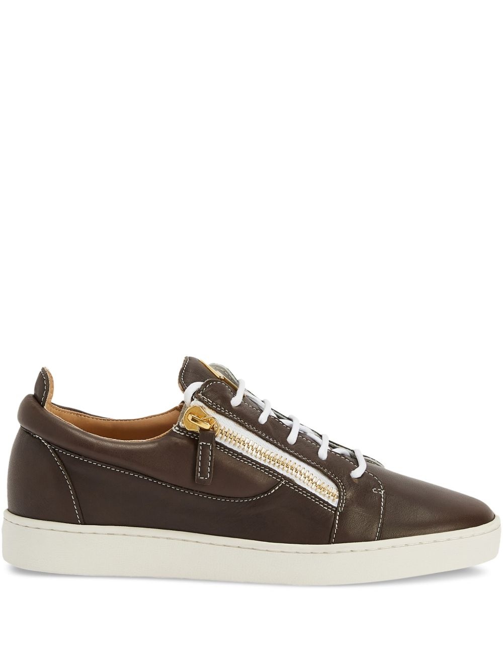 Frankie double-zip low-to sneakers Highlights - Cedar brown - Front lace-up fastening - Side zip fastening - Flat rubber sole - Branded insole Made in Italy Composition Outer: Leather 100% Sole: Rubber 100% Lining: Calf Leather 100%