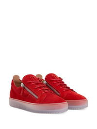 Frankie double-zip low-top sneakers Highlights - Bright red - Calf leather - Zip details - Logo plaque - Branded insole - Almond toe - Front lace-up fastening - Flat rubber sole Made in Italy Composition Outer: other fibers 100% Sole: Rubber 100% Lining: Calf Leather 100%