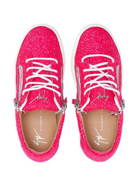 Gail glitter low-top sneakers fuchsia leather glitter detailing round toe front lace-up fastening decorative zip detailing logo plaque at the tongue branded insole flat rubber sole Made in Italy Composition Other fibres 100%