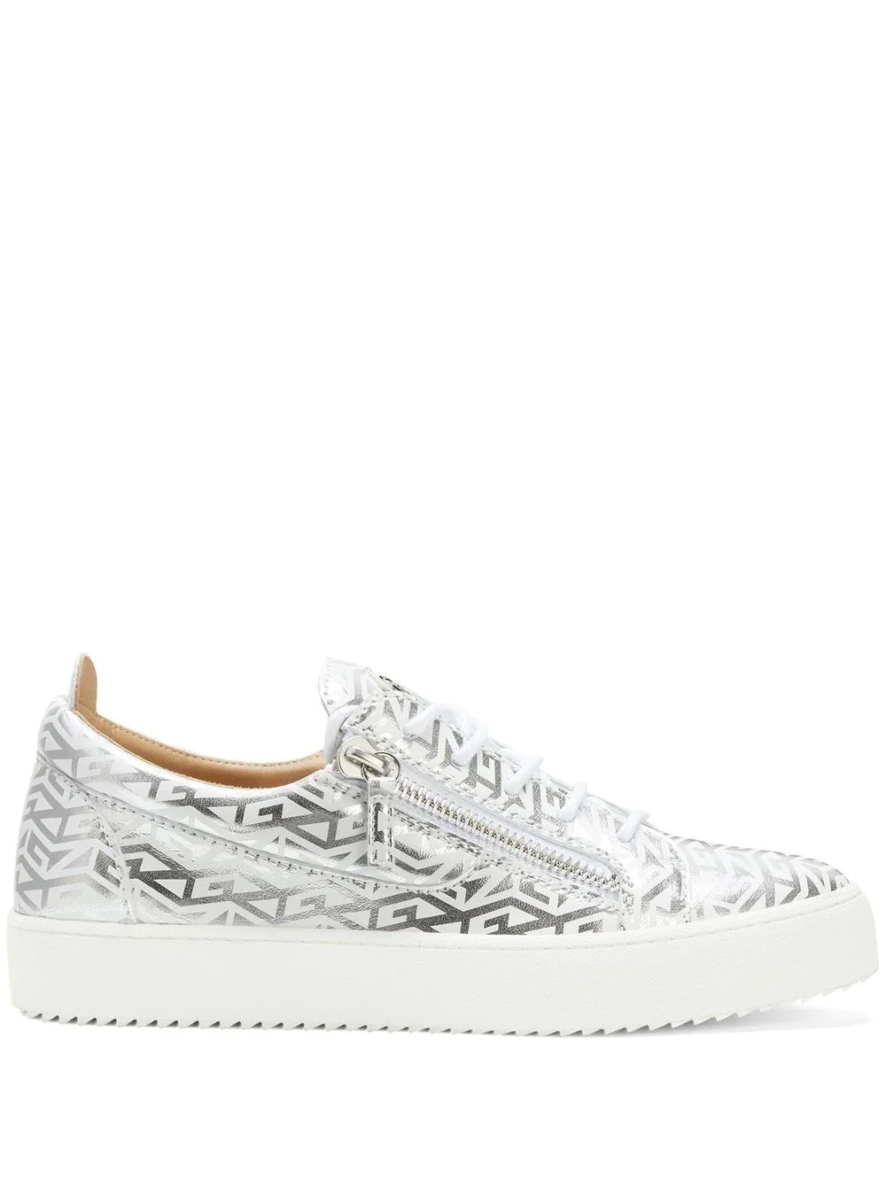 Gail Monogram sneakers Highlights - White/silver - Leather - Monogram pattern - Front lace-up fastening - Decorative zip detailing - Logo plaque at the tongue - Branded insole - Flat rubber sole Made in Italy Composition Leather 100%