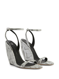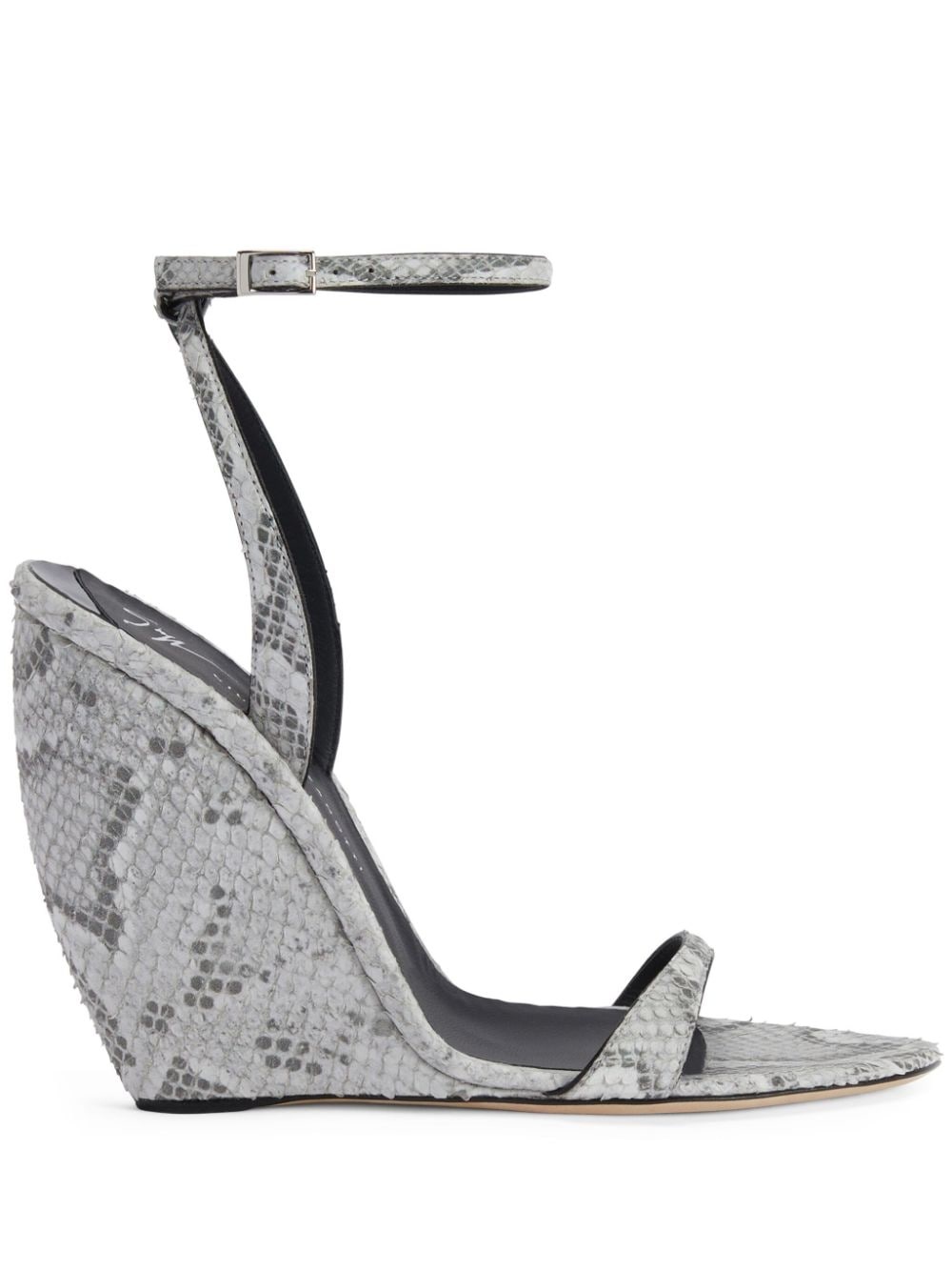 105mm Ginnyfer wedge sandals Highlights - Light grey - Leather - Snakeskin effect - Open toe - Buckle-fastening ankle strap - Branded insole - Wedge heel Made in Italy Composition Outer: Leather 100% Sole: Leather 100% Lining: Leather 100%