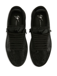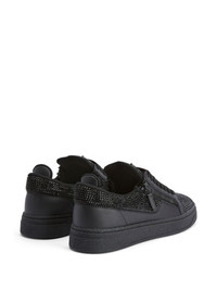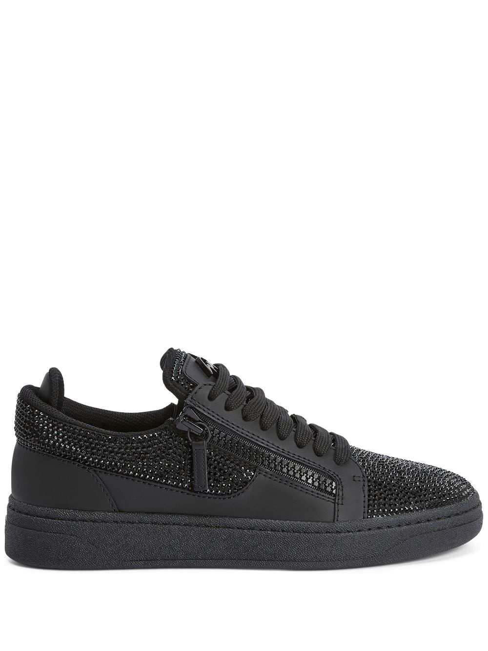 GZ 94 crystal-embellished double-zip low-top sneakers Highlights - Black - Leather - Crystal embellishment - Logo plaque at the tongue - Front lace-up fastening - Side zip fastening - Flat rubber sole Made In Italy Composition Outer: Leather 100%, Artificial Suede 100% Sole: Rubber 100% Lining: Fabric 100%