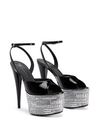 150mm GZ Aida platform sandals Highlights - Black - Leather - Patent finish - Crystal embellishment - Peep toe - Buckle-fastening ankle strap - Platform sole - 150mm high cone heel - Branded insole Made in Italy Composition Outer: Fabric 100% Sole: Leather 100% SIZE & FIT Measurement HEEL 5.9 in(15 cm) PLATFORM 2.36 in(6 cm)