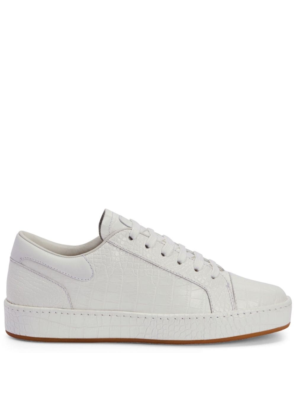 GZ-City crocodile-embossed lace-up low-top sneakers Highlights - Milk white - Leather - Embossed crocodile effect - Logo patch at the tongue - Panelled design - Front lace-up fastening - Round toe - Branded leather insole - Flat rubber sole Made in Italy Composition Outer: Leather 100%, Cotton 100% Sole: Rubber 100% Lining: Leather 100%