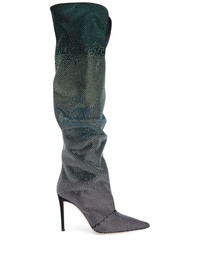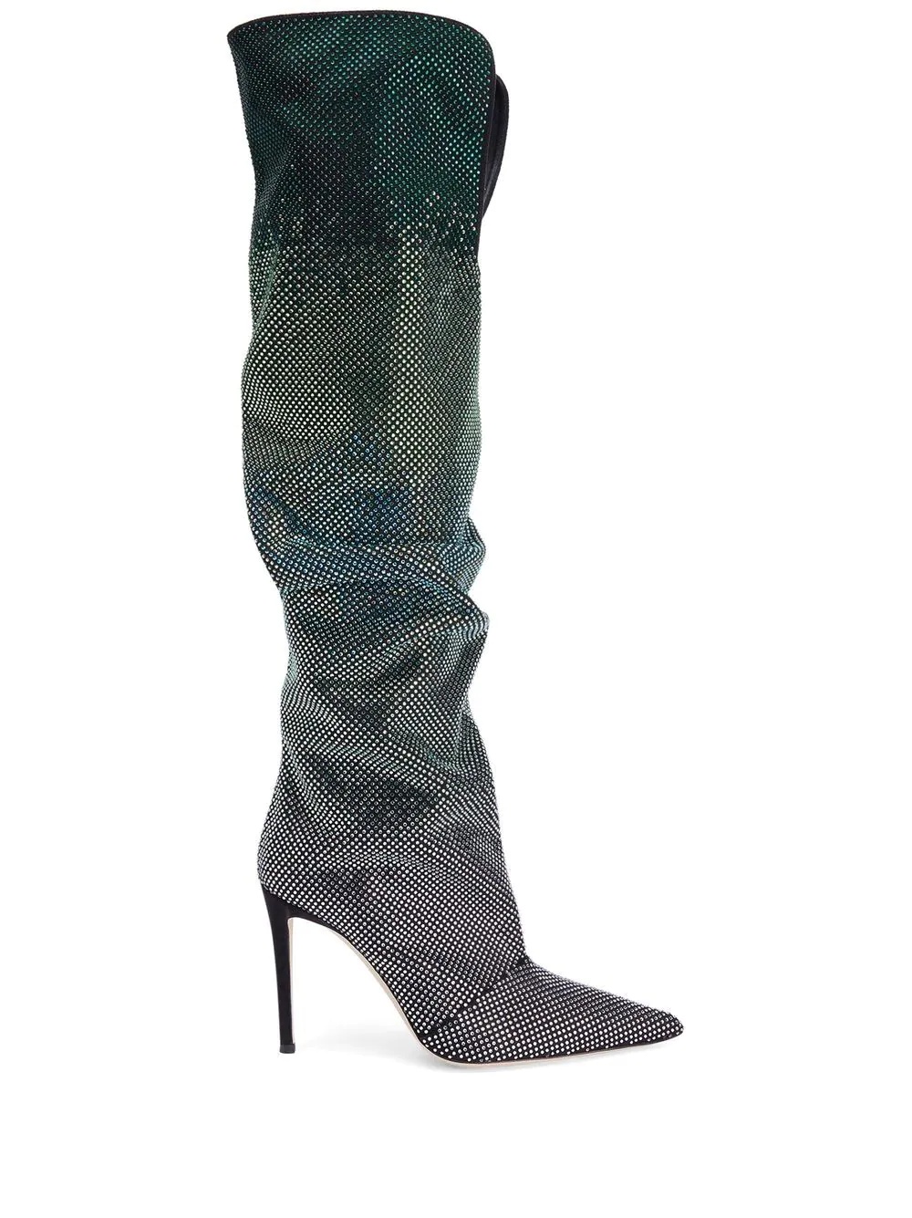 105mm GZ Gala Caleido knee-high boots Highlights - Black/multicolour - Leather - Crystal embellishment - Pointed toe - Gathered detailing - Knee-length - Pull-on style - High heel Made in Italy Composition Outer: Cotton 55%, Polyester 32%, Polyurethane 13% Sole: Leather 100%