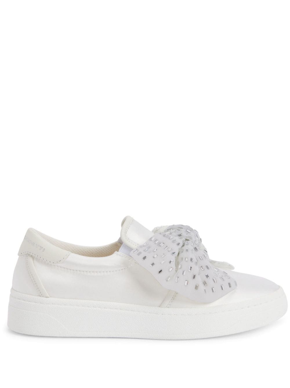 GZ94 bow-embellished sneakers Highlights - White - Canvas - Branded heel counter - Branded footbed - Bow detailing - Crystal embellishment - Round toe - Flat rubber sole - Slip-on style Made in Italy Composition Outer: Satin 100% Sole: Rubber 100%