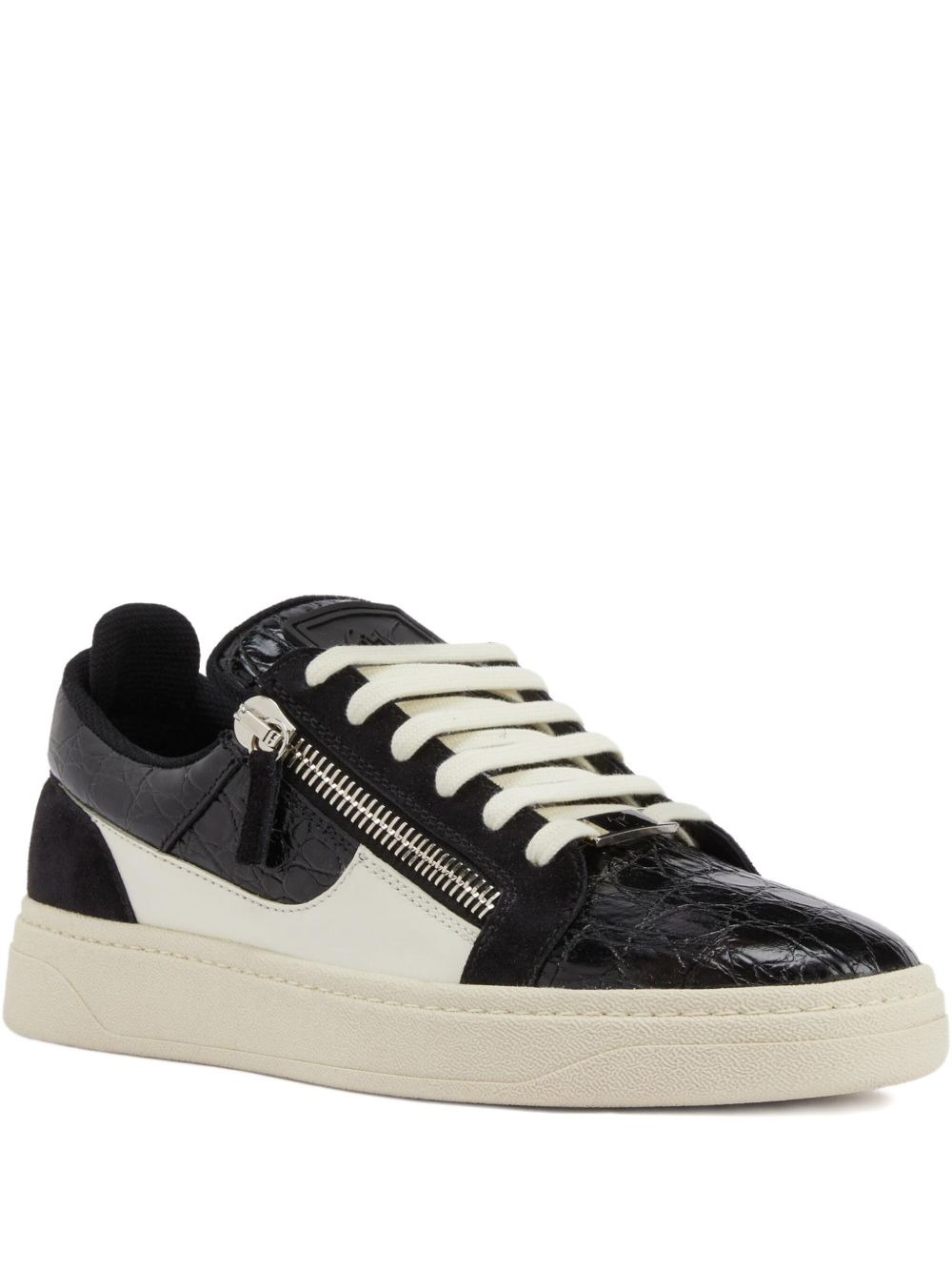 Gz94 crocodile-effect zip-detail sneakers Highlights - Black - Crocodile-effect leather - Side-zip fastening - Suede panelling - Lace-up closure - Flat rubber sole Made in Italy Composition Lining: Fabric 100% Sole: Rubber 100% Outer: Leather 100%