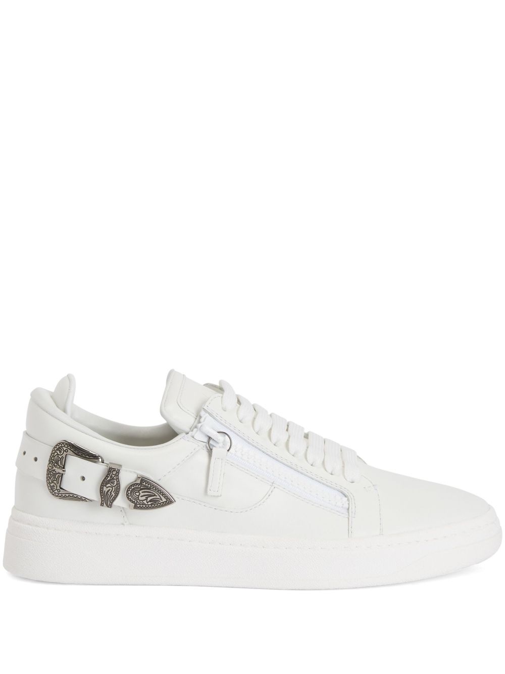 GZ94 Deluxe double-zip low-top sneakers Highlights - White - Front lace-up fastening - Side zip fastening - Decorative buckle detail - Logo-debossed tongue Made in Italy Composition Outer: Leather 100% Sole: Rubber 100% Lining: Fabric 100%, Calf Leather 100%
